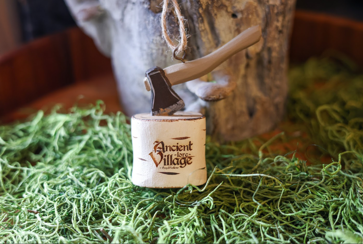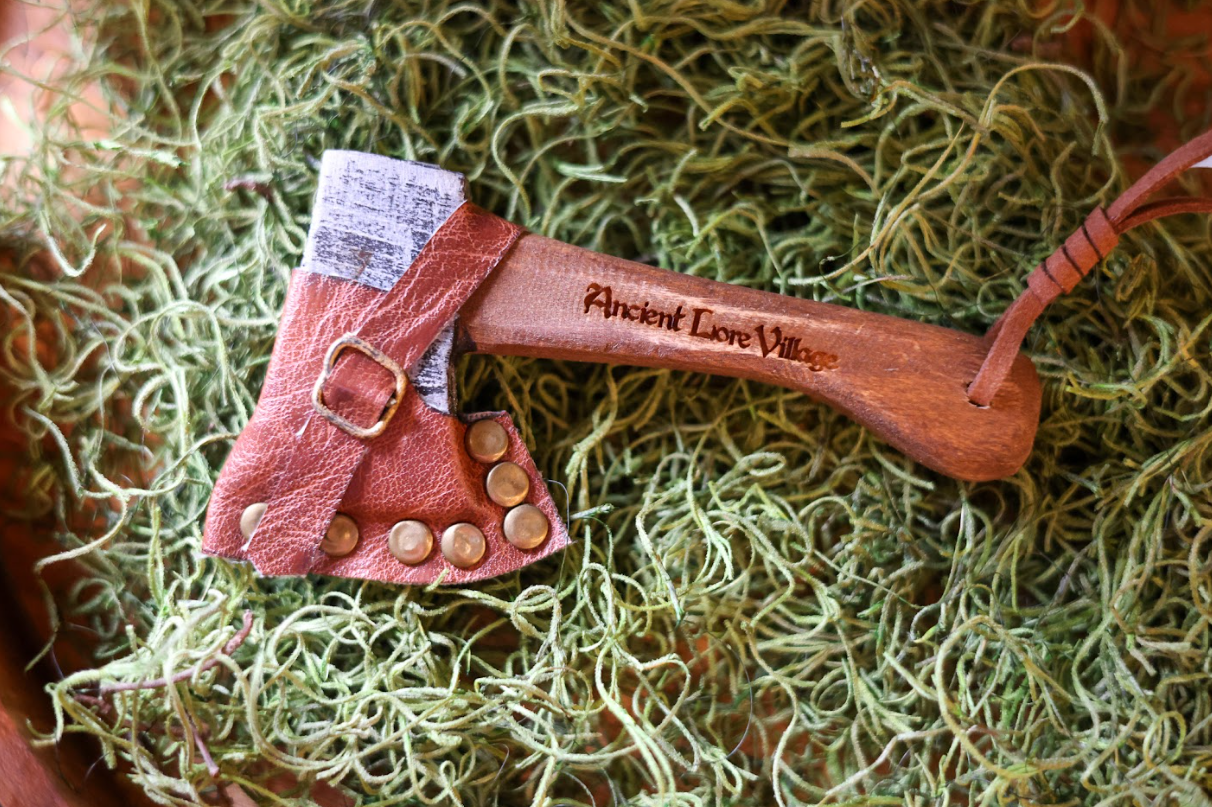 Add a touch of rustic charm to your holiday decor with this 5-1/2" L x 2-3/4" W Wood Axe Ornament. Available in two styles, each ornament features the iconic Ancient Lore Village logo, making it a perfect blend of craftsmanship and village spirit. The detailed design captures the essence of the village, bringing a bit of nature-inspired magic to your tree or festive display. Whether you're a collector or simply looking for a unique decoration, this wood axe ornament is sure to add a special touch to any celebration.