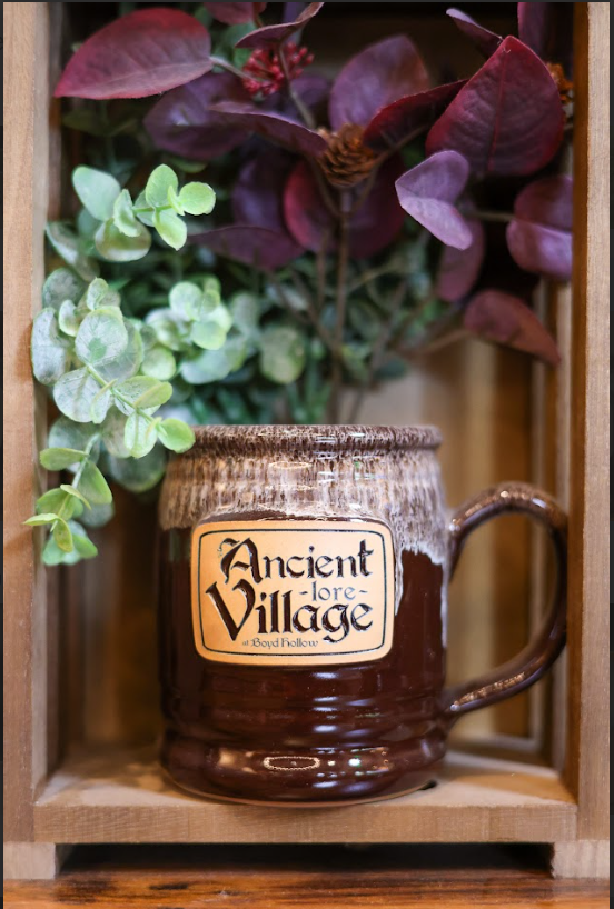 This handmade mug, crafted with pride in the USA, features the distinctive Ancient Lore Village logo. Made in Wisconsin, this heavy-duty 14-16 oz mug is built to last and is Yeti approved for its durability. The rich brown finish adds a touch of rustic charm, making it the perfect companion for your morning coffee or evening beverage. Whether you’re enjoying a hot drink at home or taking it on the go, this mug offers both style and functionality.